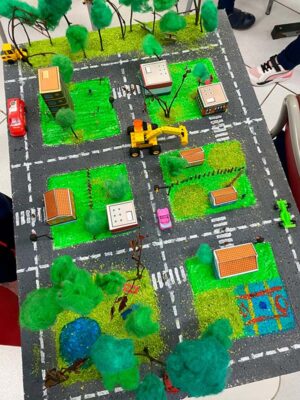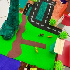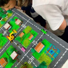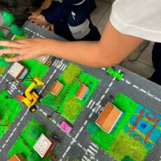 - Desenvolvimento do raciocínio espacial: O conceito de espaço e de “mapa” é abstrato para a idade deles. Ao construir, as crianças precisam entender a proporção, a distância e a posição dos elementos. Isso ajuda a construir a base para o pensamento lógico e matemático no futuro.