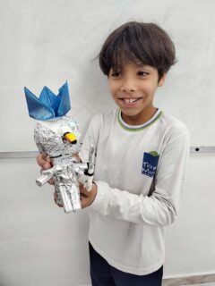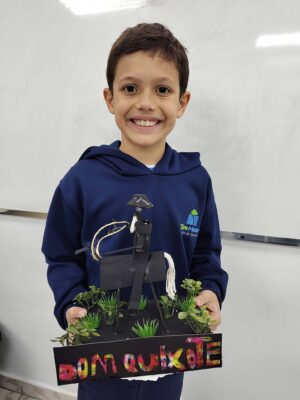 O 4º ano viveu uma experiência incrível de criatividade e imaginação! Inspirados no livro “Era uma vez Dom Quixote”, lido durante as férias, os alunos e suas famílias se uniram para criar esculturas originais, que dão vida ao cavaleiro sonhador, ao fiel Sancho Pança e aos tantos símbolos dessa aventura inesquecível.