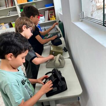 Para celebrar esse aprendizado, prepararam uma apresentação musical com as canções “Disque pra mim”, do grupo Éramos Três, e “A máquina de escrever”, de Leroy Anderson, que transformam sons e memórias em música.