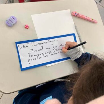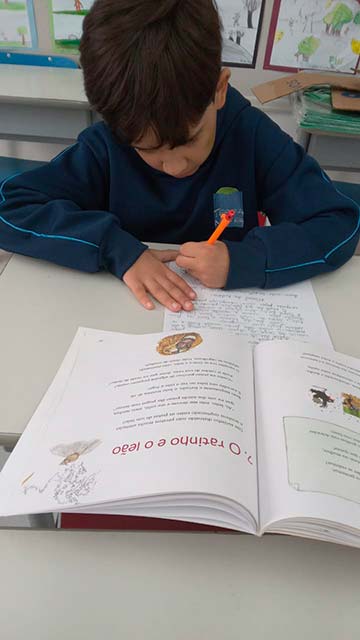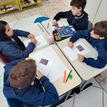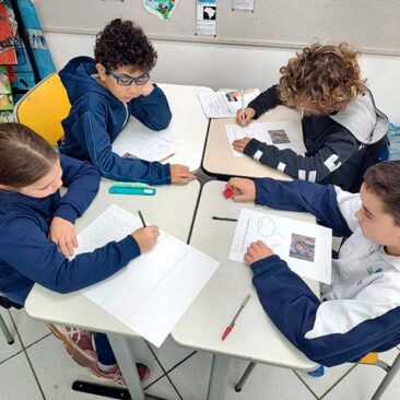 Antes da escrita, a comunicação era passada “de boca em boca”, por meio das histórias contadas ao redor do fogo. As fábulas, trabalhadas pelos alunos do 3º ano, representam esse elo entre a tradição oral e a linguagem escrita. Ao estudá-las, as crianças compreenderam como a comunicação evoluiu da memória coletiva para o registro permanente e como as morais dessas histórias cumprem um papel essencial de ensinar valores, transmitir sabedoria e orientar comportamentos por meio da narrativa. Também perceberam que, à medida que os meios de comunicação se transformam – da fala para a escrita, do livro para as telas -, as histórias passam a ser contadas de novas formas, adaptando-se ao tempo, à cultura e à linguagem de cada geração, ganhando assim novos significados e interpretações.