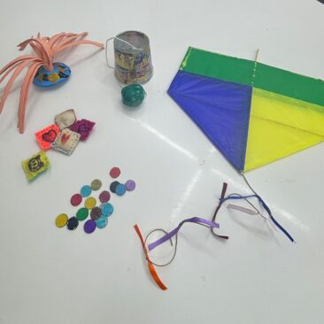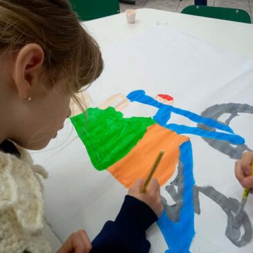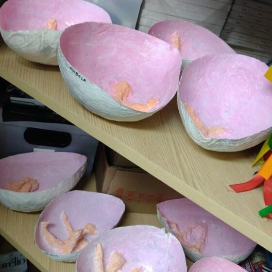 Essa trajetória começa no início da própria humanidade, simbolizada pelos trabalhos iniciais da turma da oficina “O coração da Arte” que apresenta a confecção da “barriga de uma mãe” com o bebê em seu interior, representação poética do nascer da inteligência humana.