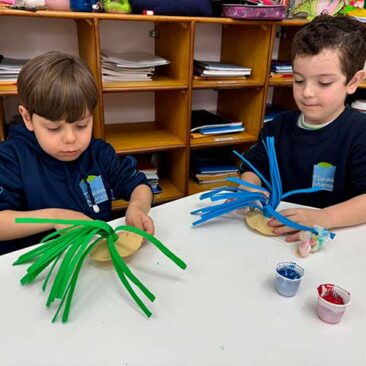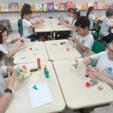 Antes das redes digitais, as conexões aconteciam de outra forma: nos jogos, nas ruas, nas conversas e nas brincadeiras compartilhadas. As crianças do 1º ano resgataram brincadeiras tradicionais, explorando o valor do encontro, do olhar e do riso como forma de comunicação genuína. A proposta convida à reflexão sobre a importância de se desconectar das telas para se reconectar com o outro, celebrando a infância em sua essência.