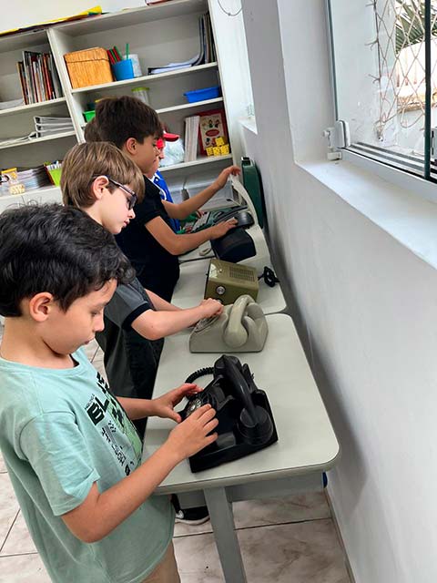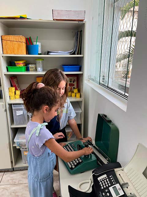 Para celebrar esse aprendizado, prepararam uma apresentação musical com as canções “Disque pra mim”, do grupo Éramos Três, e “A máquina de escrever”, de Leroy Anderson, que transformam sons e memórias em música.