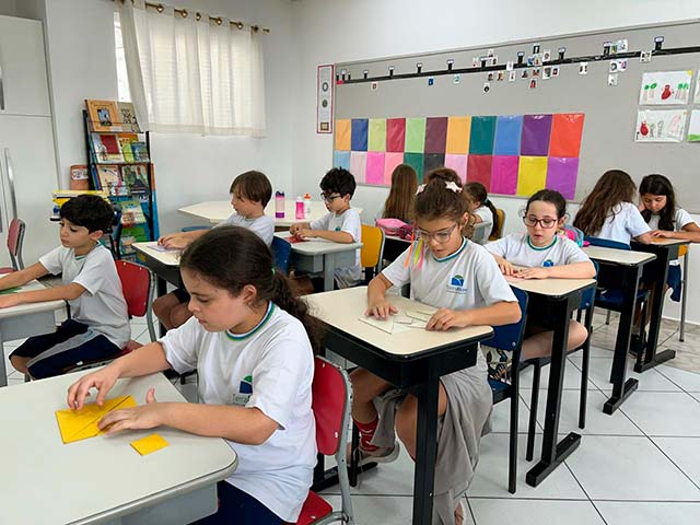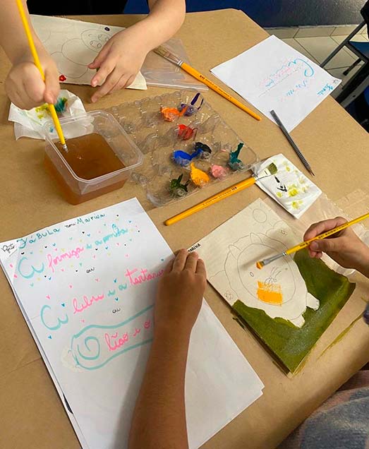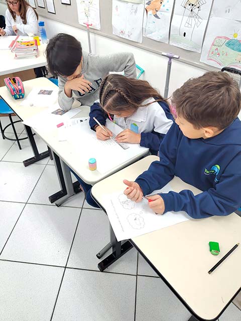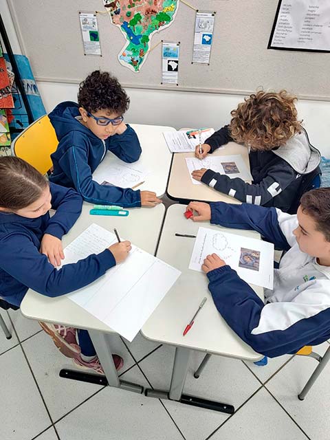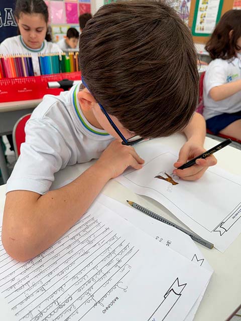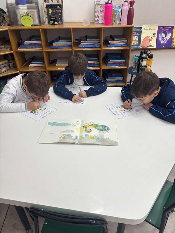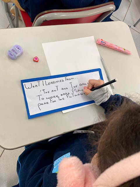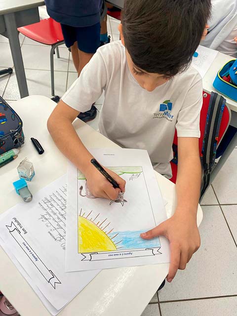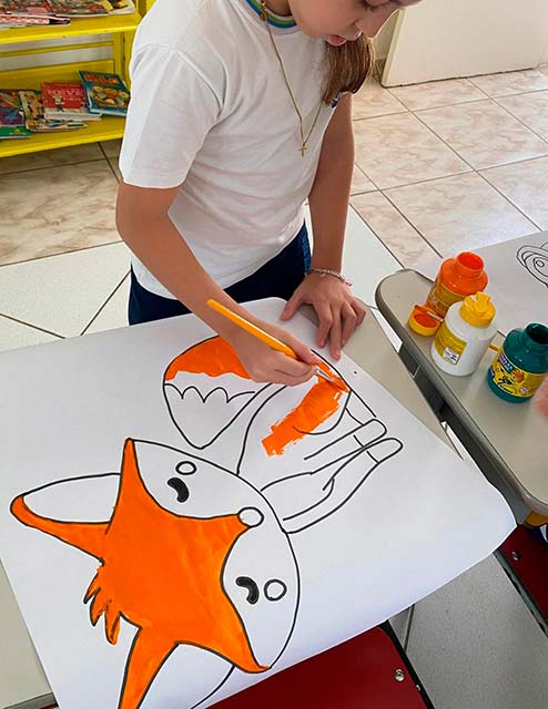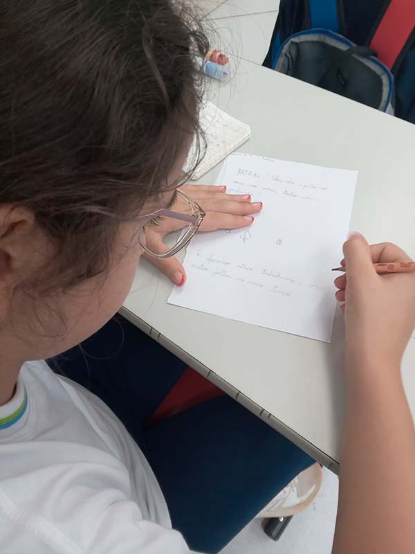 Antes da escrita, a comunicação era passada “de boca em boca”, por meio das histórias contadas ao redor do fogo. As fábulas, trabalhadas pelos alunos do 3º ano, representam esse elo entre a tradição oral e a linguagem escrita. Ao estudá-las, as crianças compreenderam como a comunicação evoluiu da memória coletiva para o registro permanente e como as morais dessas histórias cumprem um papel essencial de ensinar valores, transmitir sabedoria e orientar comportamentos por meio da narrativa. Também perceberam que, à medida que os meios de comunicação se transformam – da fala para a escrita, do livro para as telas -, as histórias passam a ser contadas de novas formas, adaptando-se ao tempo, à cultura e à linguagem de cada geração, ganhando assim novos significados e interpretações.