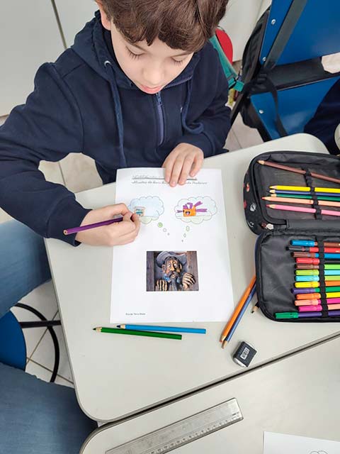 A leitura do clássico Dom Quixote permitiu que o 4º ano refletisse sobre um momento decisivo da história da comunicação: a passagem da tradição oral para a cultura escrita e impressa. Na época de Cervantes, os livros começaram a se popularizar e, com eles,