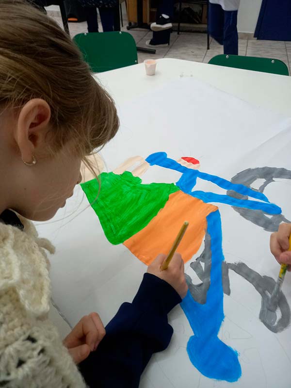 Antes das redes digitais, as conexões aconteciam de outra forma: nos jogos, nas ruas, nas conversas e nas brincadeiras compartilhadas. As crianças do 1º ano resgataram brincadeiras tradicionais, explorando o valor do encontro, do olhar e do riso como forma de comunicação genuína. A proposta convida à reflexão sobre a importância de se desconectar das telas para se reconectar com o outro, celebrando a infância em sua essência.
