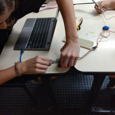 Ao longo de 2025, os estudantes do 8º ano mergulharam em experiências práticas com eletrônica, programação e design digital, sempre integrando criatividade, colaboração e reflexão sobre o uso da tecnologia no cotidiano. Em fevereiro, tiveram o primeiro contato com o Arduino por meio do Tinkercad, ambiente de simulação digital. O aprendizado começou de forma simples, com o clássico blink – o piscar de um LED controlado por programação –, permitindo compreender a lógica básica entre software e hardware.