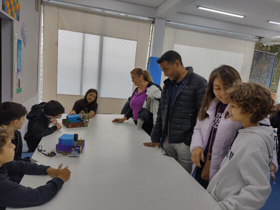 No mês de março, os alunos ampliaram essa prática, construindo um semáforo digital com LEDs. A atividade uniu noções de trânsito, programação e prototipagem, consolidando os conceitos de tempo, lógica e sequência de comandos.