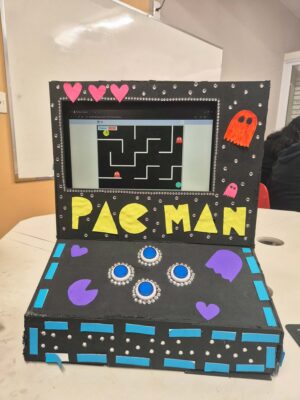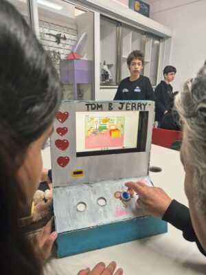 E o 7º ano colocou a mão na massa para desenvolver jogos no Scratch! Eles foram além, construindo um fliperama de MDF personalizado para cada jogo criado. Uma verdadeira fusão de arte, lógica e expressão pessoal!