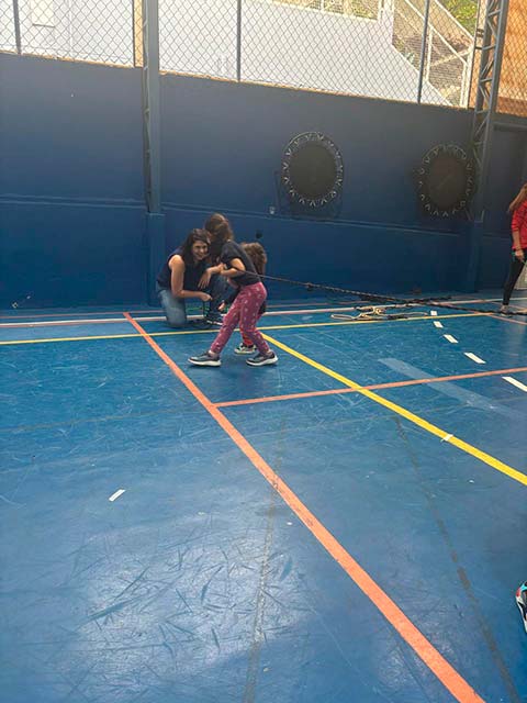 Foi um momento especial de resgate das brincadeiras da infância dos pais: teve aquecimento com Escravos de Jó, muita diversão com o vai e vem, além de pular elástico, amarelinha e muitas outras atividades que despertaram memórias afetivas e arrancaram sorrisos de todas as idades!